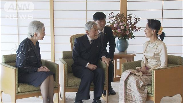 親日、フィリピンのドゥテルテ大統領には売国の宮、三笠宮殿下の薨去を言い訳に会わなかったくせに、反日の相手だとなぜかイソイソ出て来る皇后陛下。首が本当に痛けりゃ、こんなおねだり反日者の、売国女史アウン・サン・スー・チーなんかに会いに出てこないし、絵画展にひんぱんにお出かけもしないです。